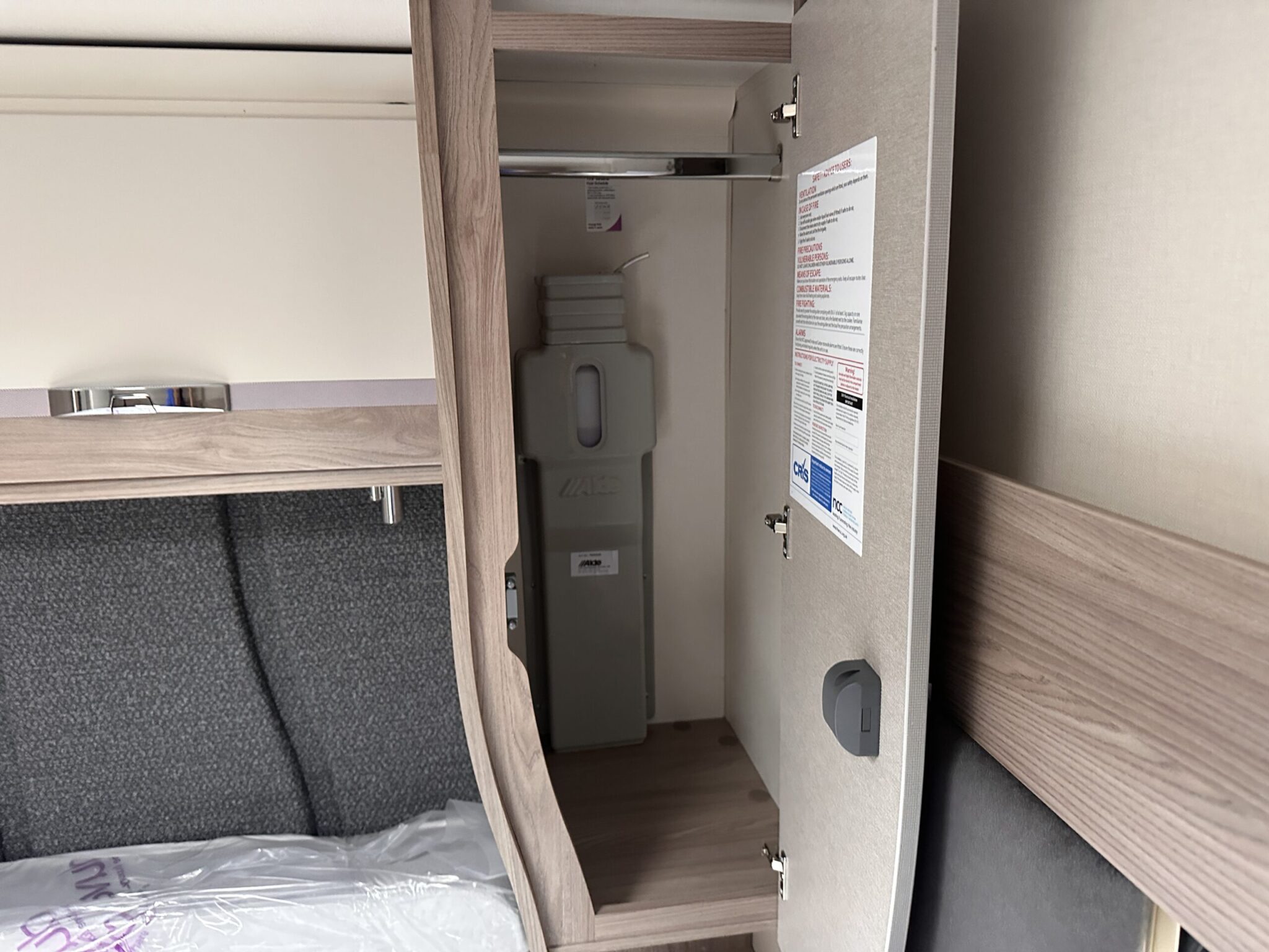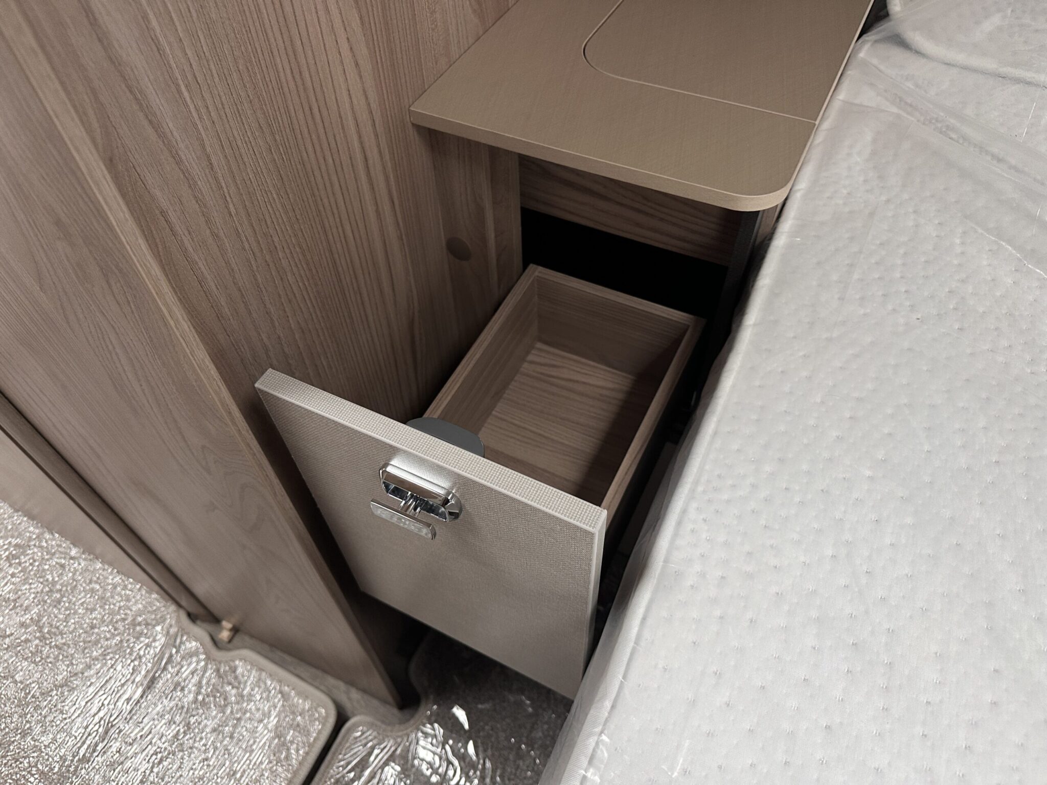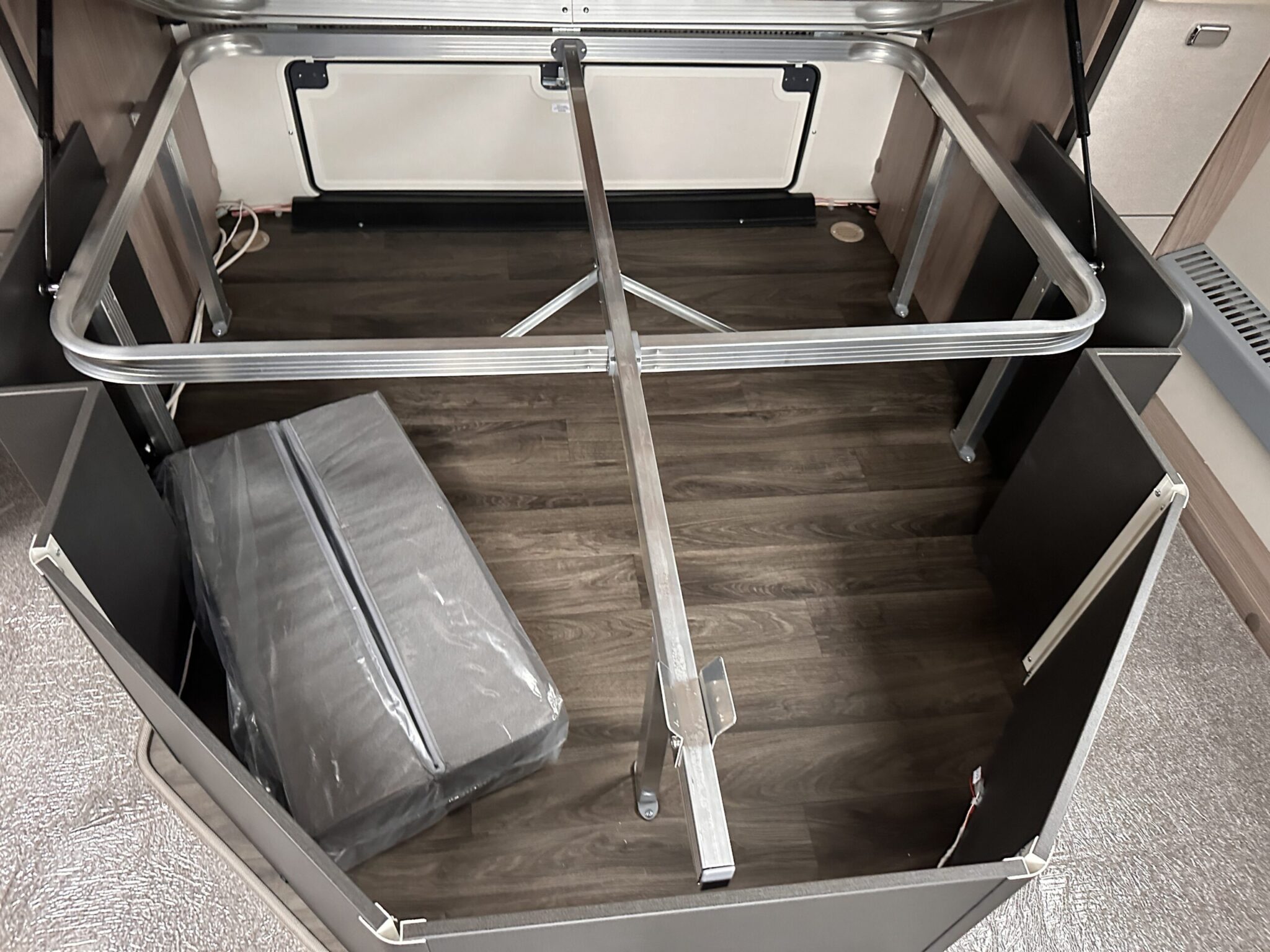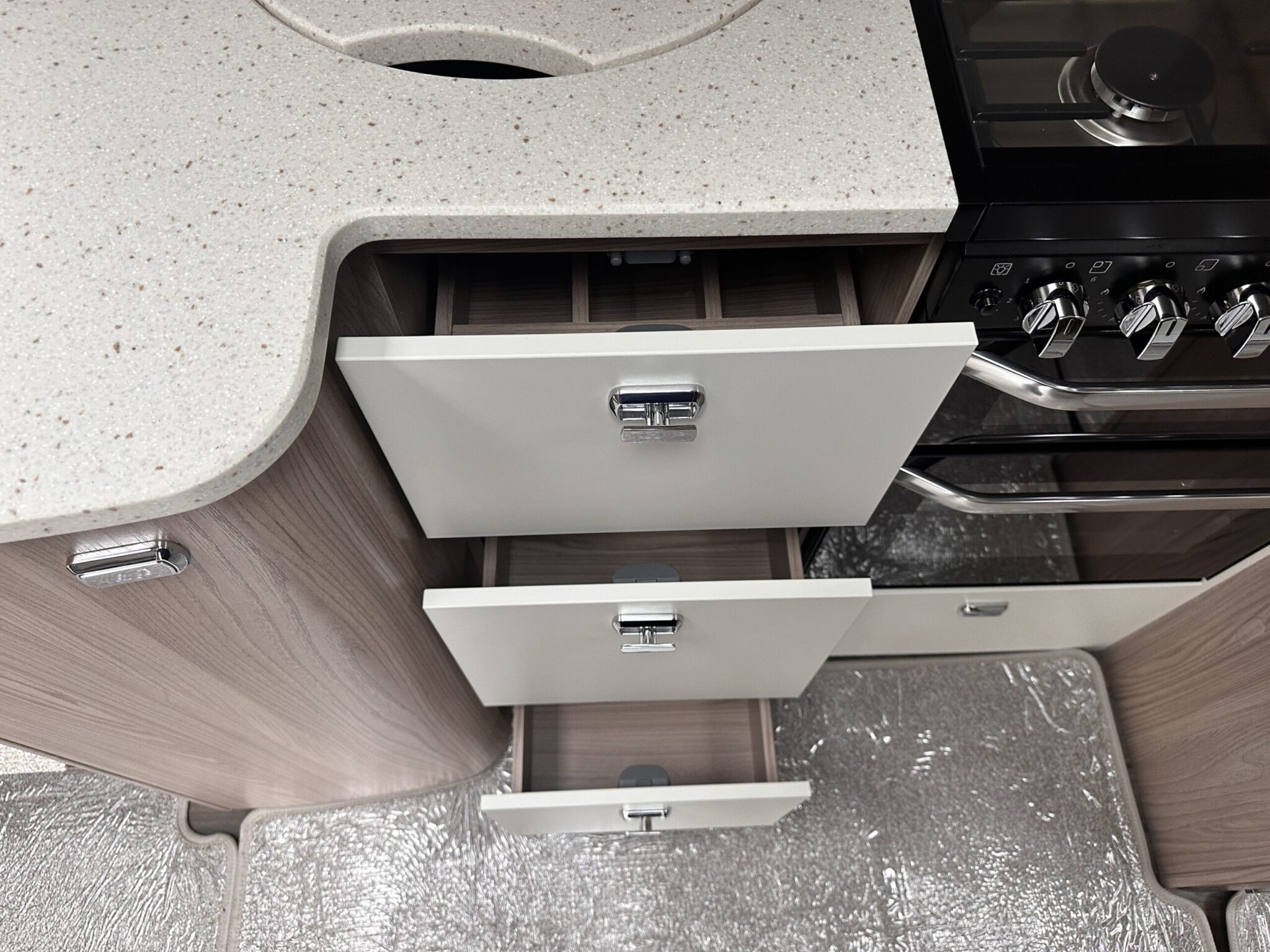 The Swift Conqueror Grande 560 L is part of the prestigious 2026 range, offering 8-foot wide comfort, style, and practical design. With a transverse island bed, a central washroom split across the bedroom, and a front L-shaped lounge that converts into a bed, this 4 berth single axle caravan is designed for couples or families who want more living space. At 1578kg unladen, it balances generous room with reliable towing capability.