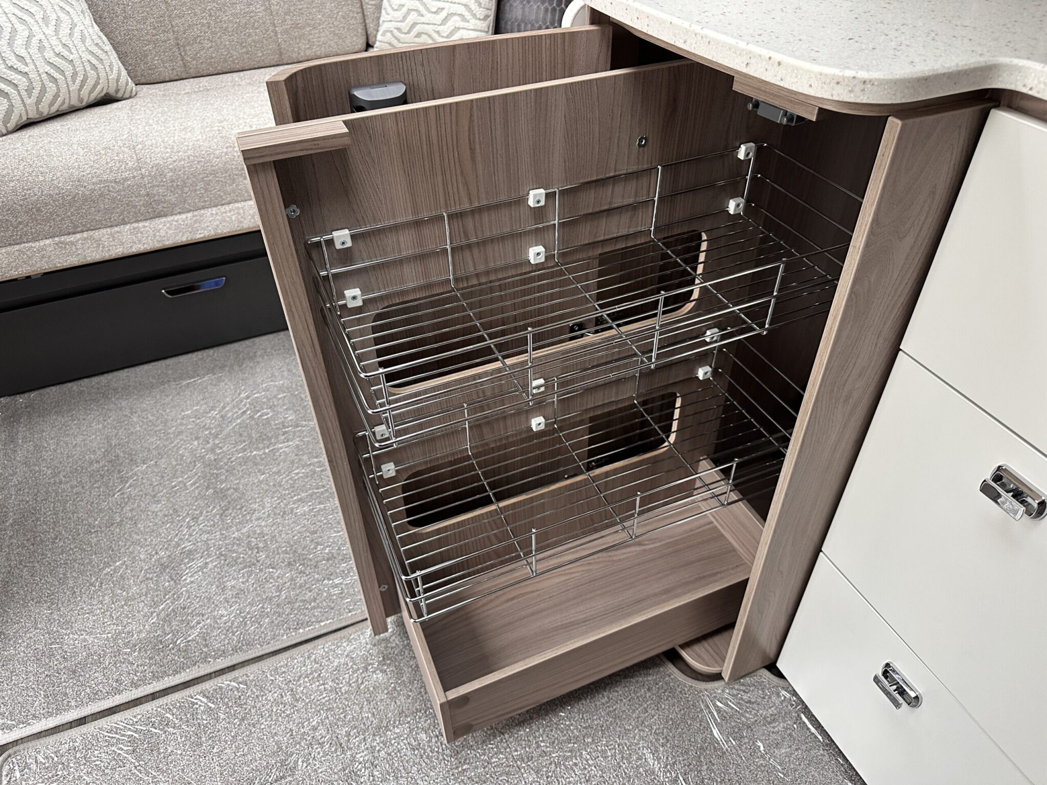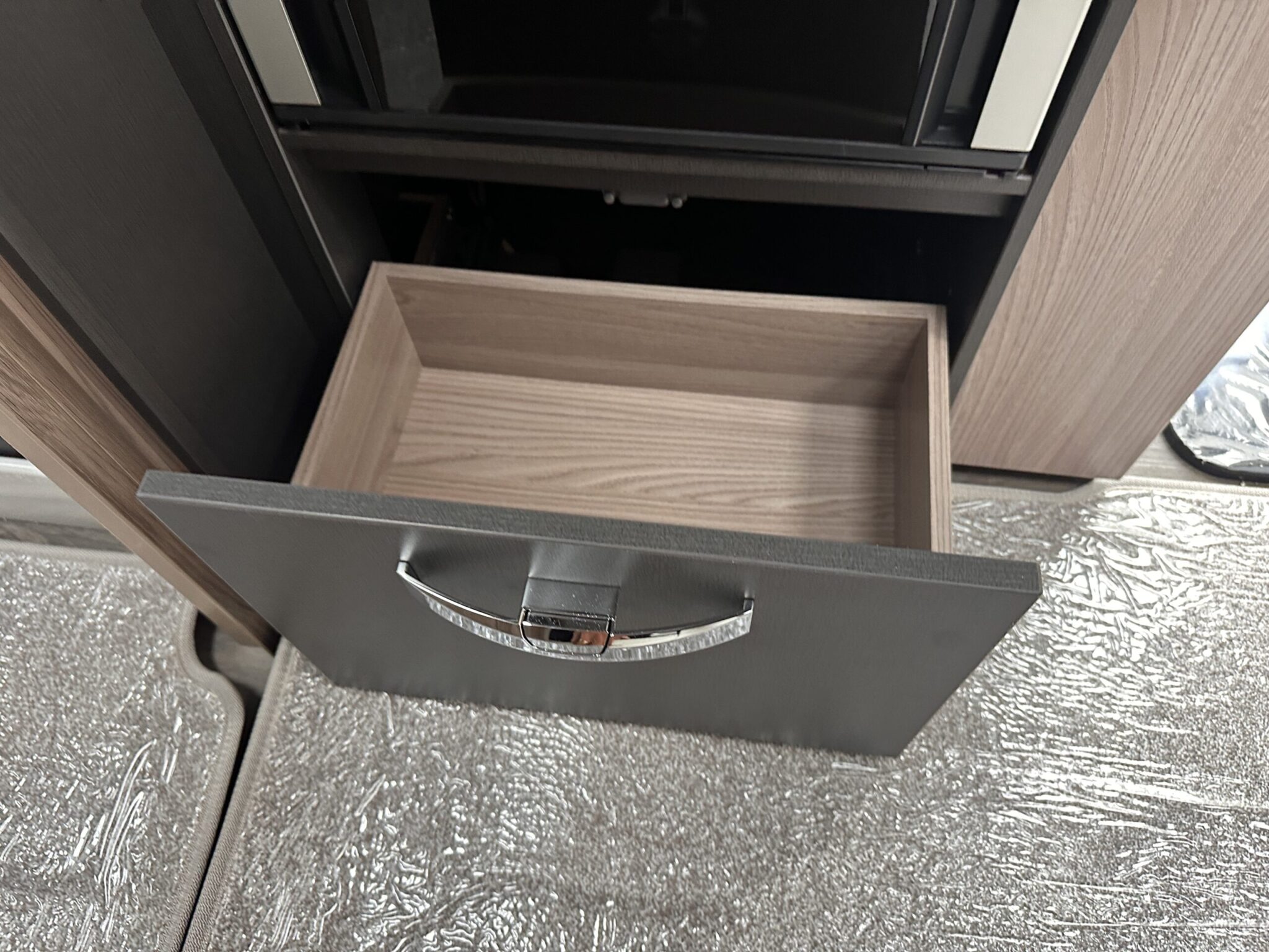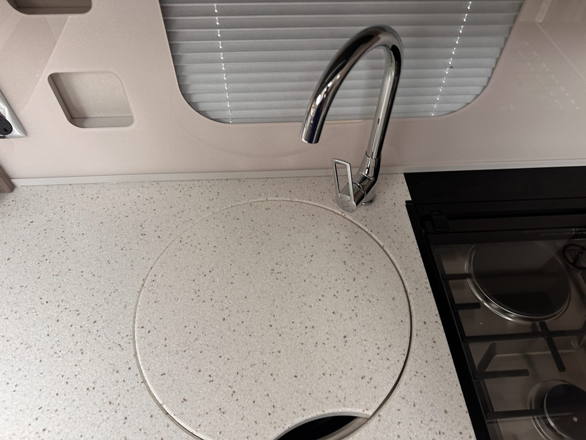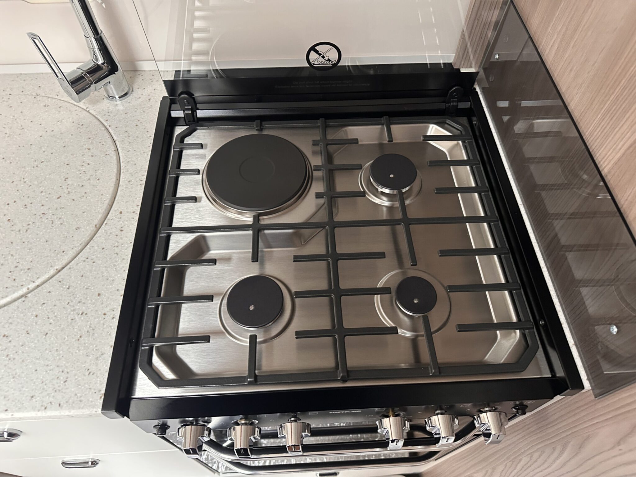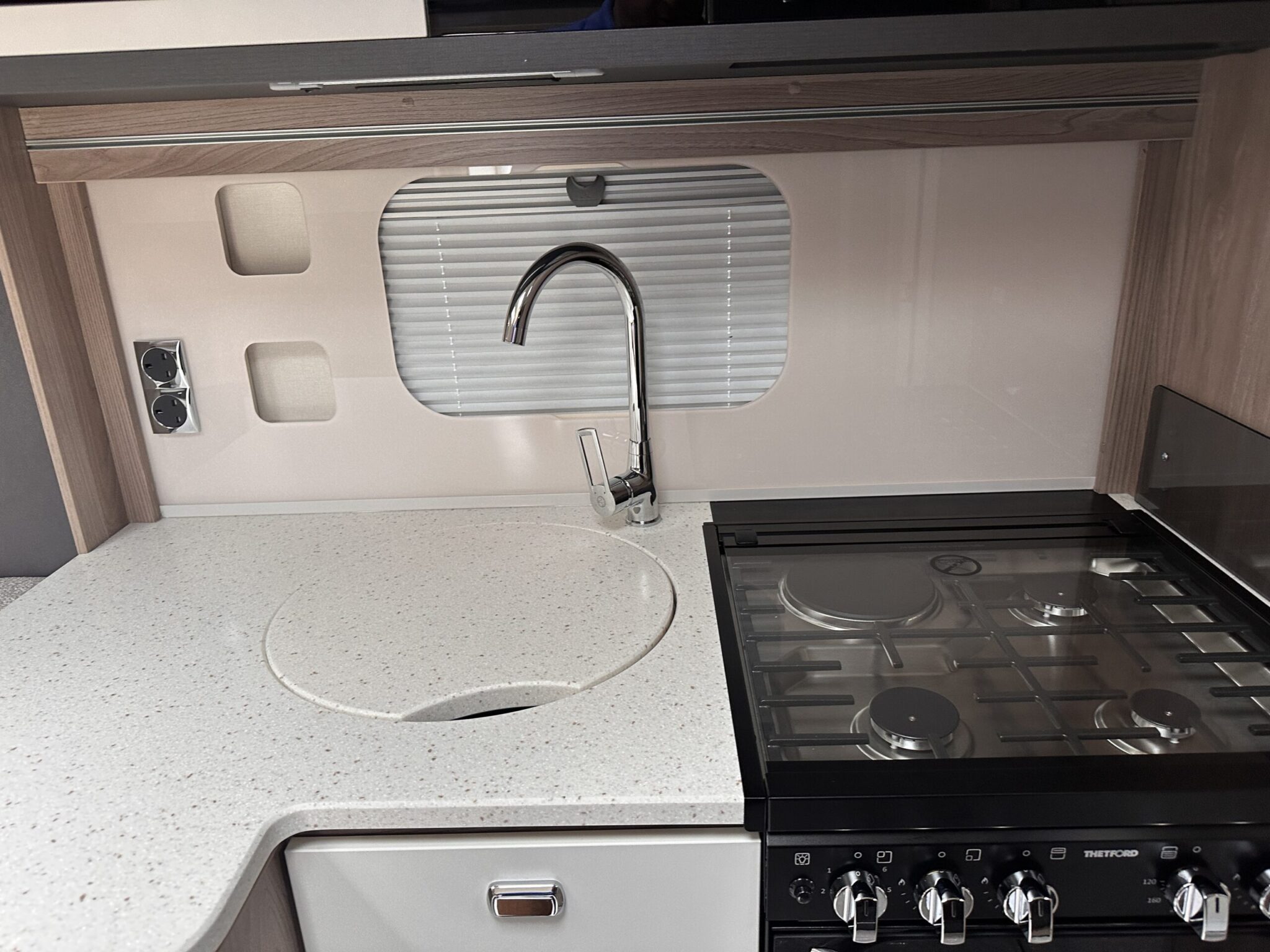 • Fully equipped kitchen with Thetford oven, grill, hob, and 133L fridge