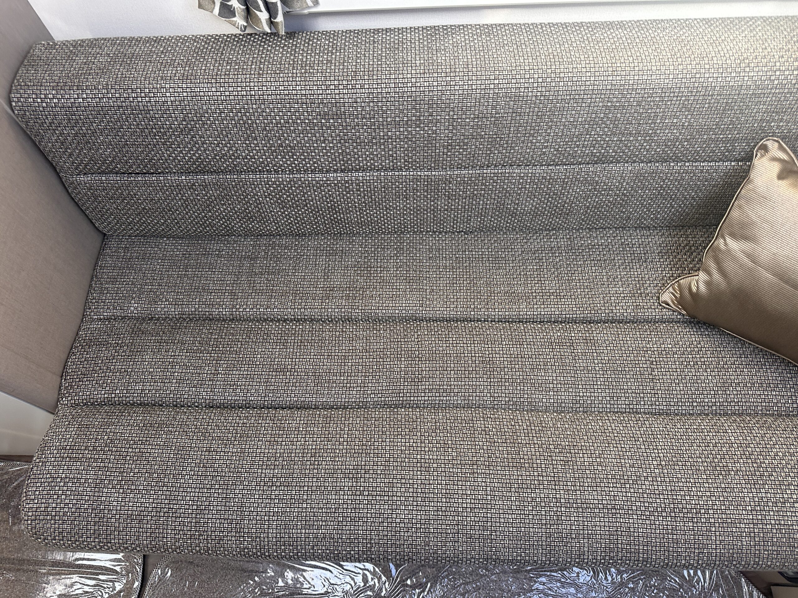 - Lounge: The front lounge is a bright and relaxing space, with long, comfortable parallel sofas and a large panoramic sunroof overhead. This area is perfect for entertaining or relaxing and converts into a large double bed at night.