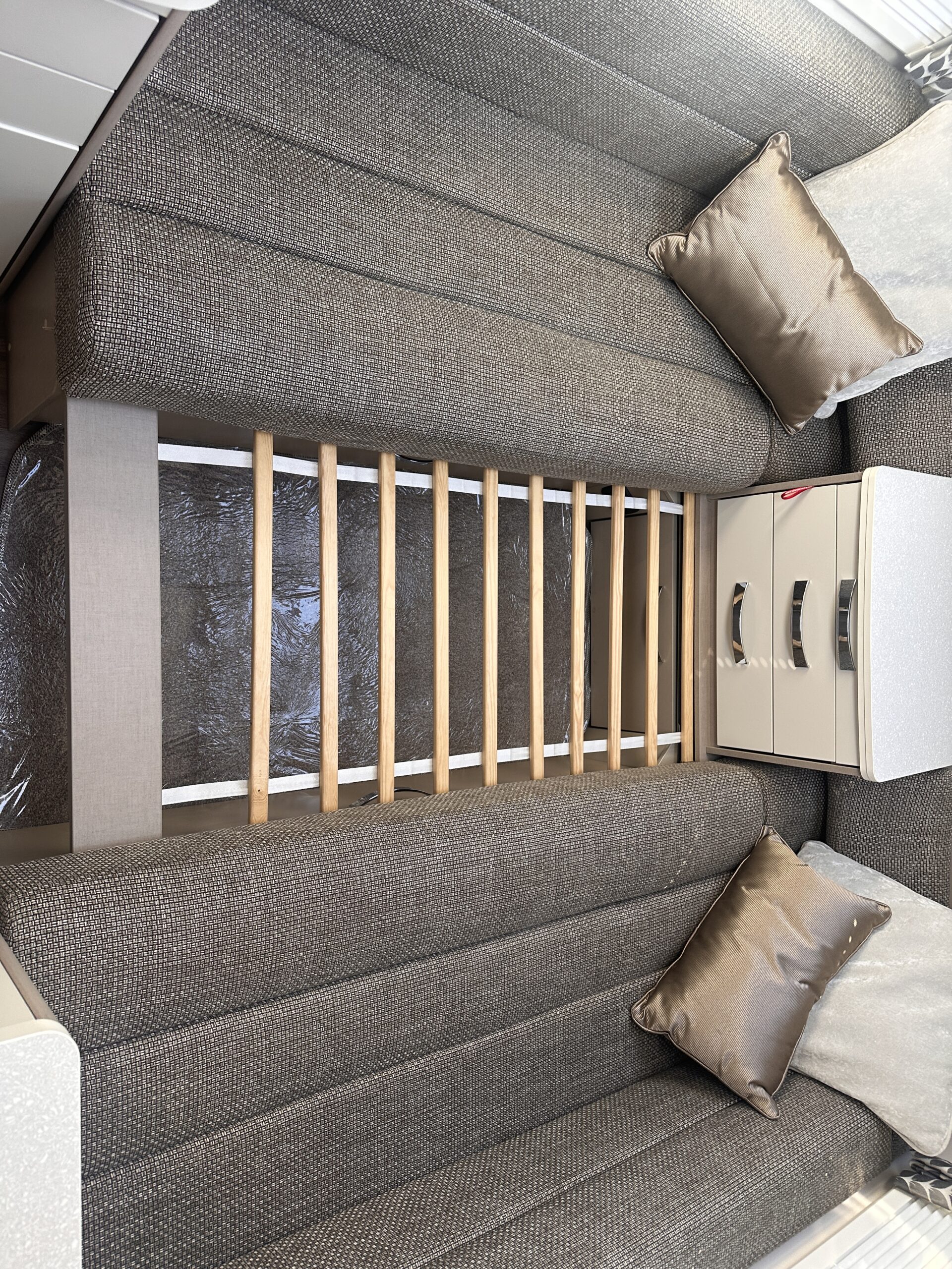 1. Is this layout good for families? Yes, this layout is brilliant for families. The side dinette in the Eccles 530 can be left as a seating and activity area for children during the day, and at night it converts into their own sleeping area as bunk beds, leaving the main lounge free for the adults.