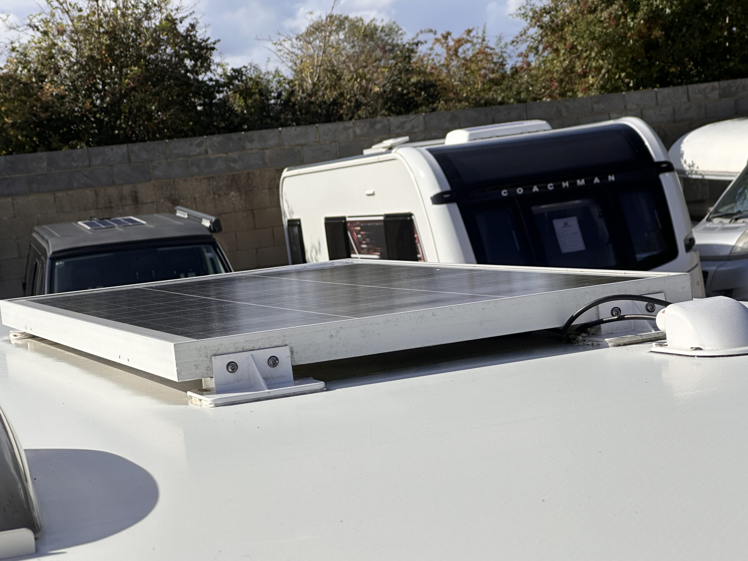 - Solar Panel: A factory-fitted 100W solar panel is mounted on the roof to keep your leisure battery topped up, giving you more flexibility for off-grid stays.