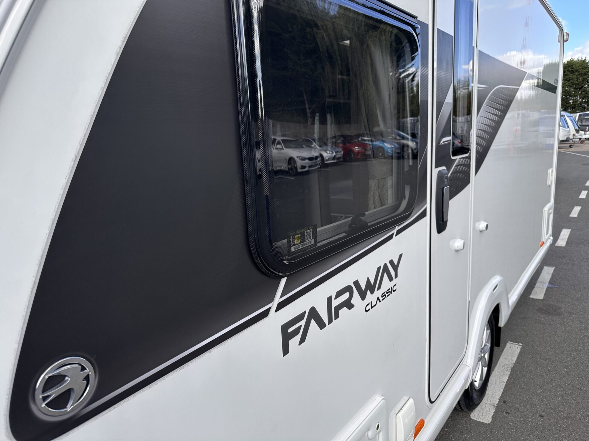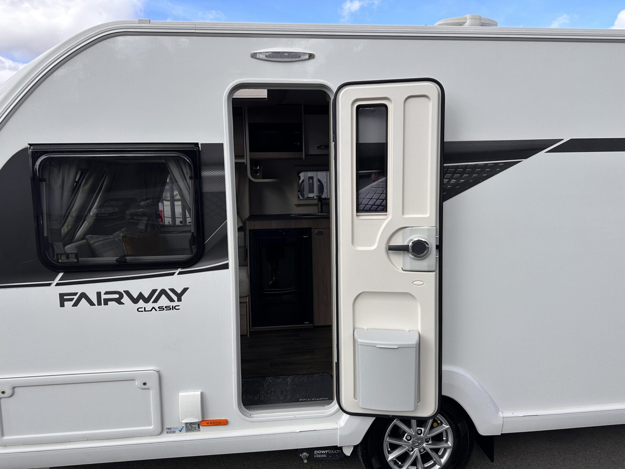 This is a fantastic opportunity to own a nearly new 2023 Swift Fairway 470. The Fairway is a dealer special edition based on the best-selling Swift Sprite, meaning it comes with a significantly higher specification and lots of desirable extras as standard. It features the hugely popular layout of a fixed French bed and a corner washroom, making it the perfect caravan for a couple, while the front lounge can easily accommodate guests. Being a lightweight, single-axle model, it's a dream to tow and can be pulled by a wide range of family cars. With a solar panel already fitted, this one-owner caravan is in beautiful condition and is ready for countless adventures.