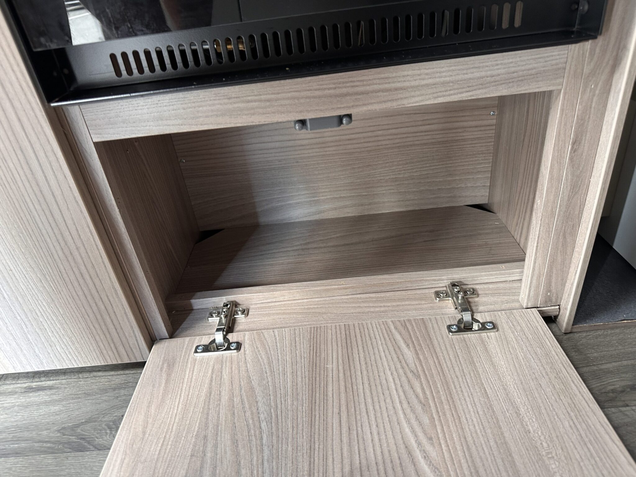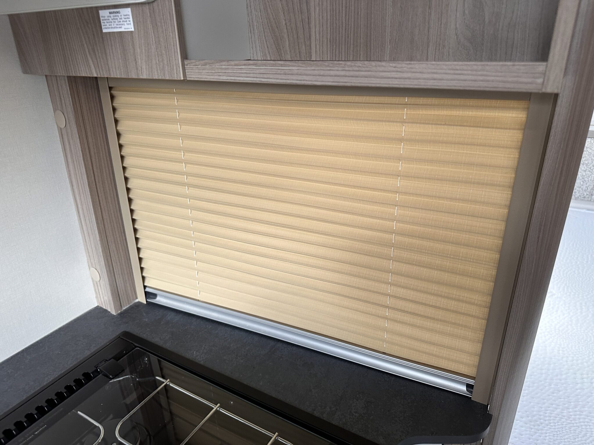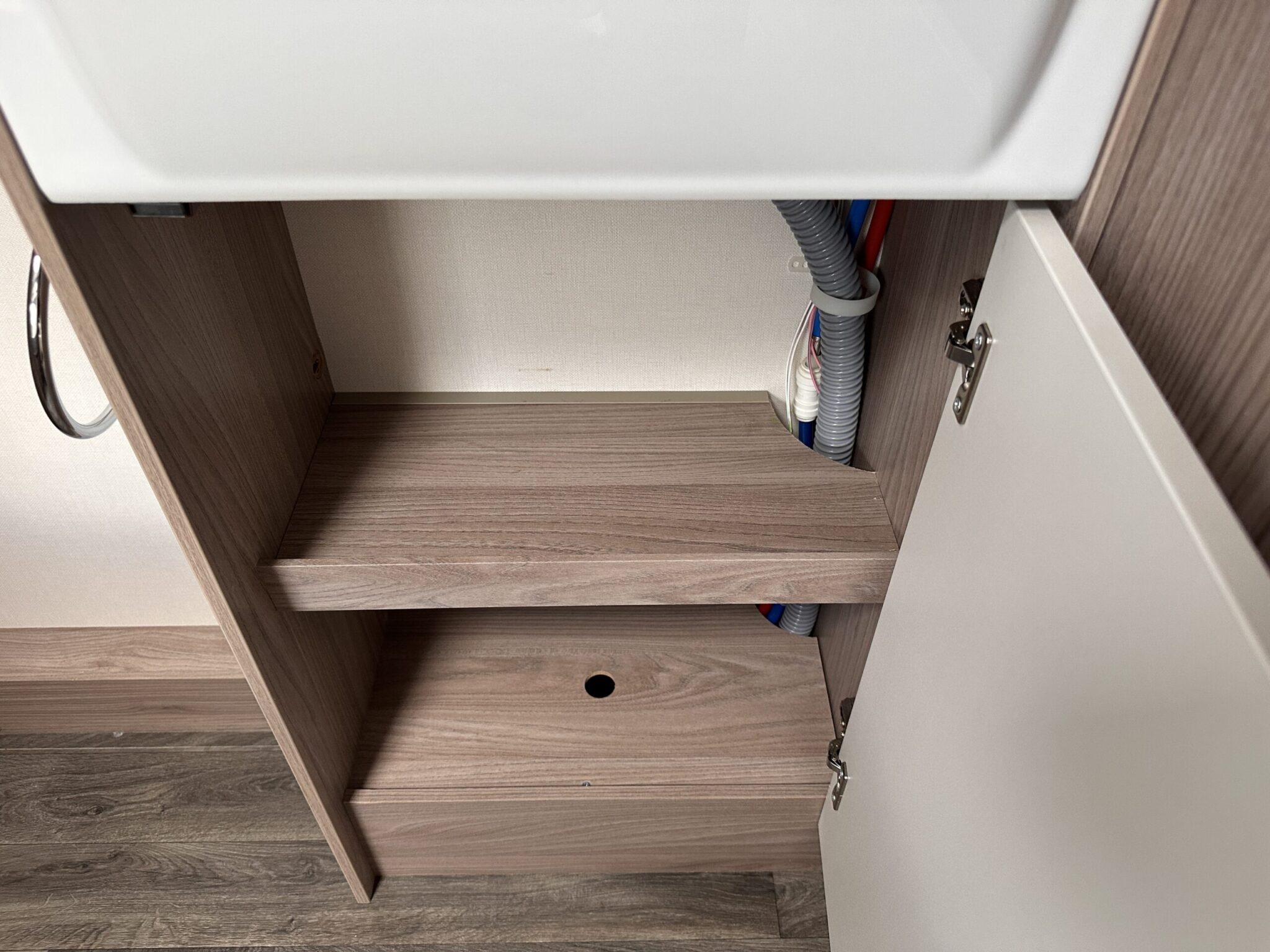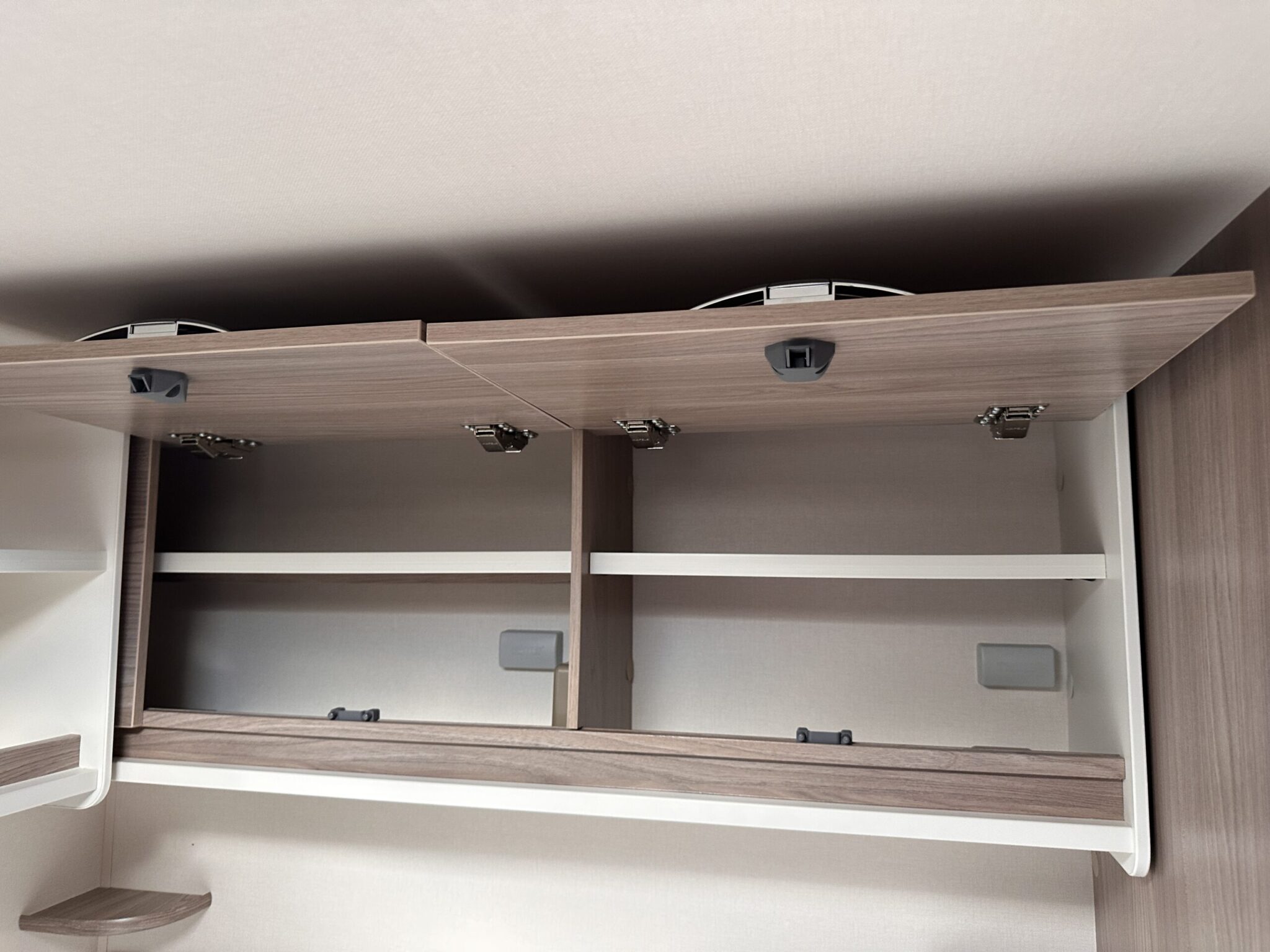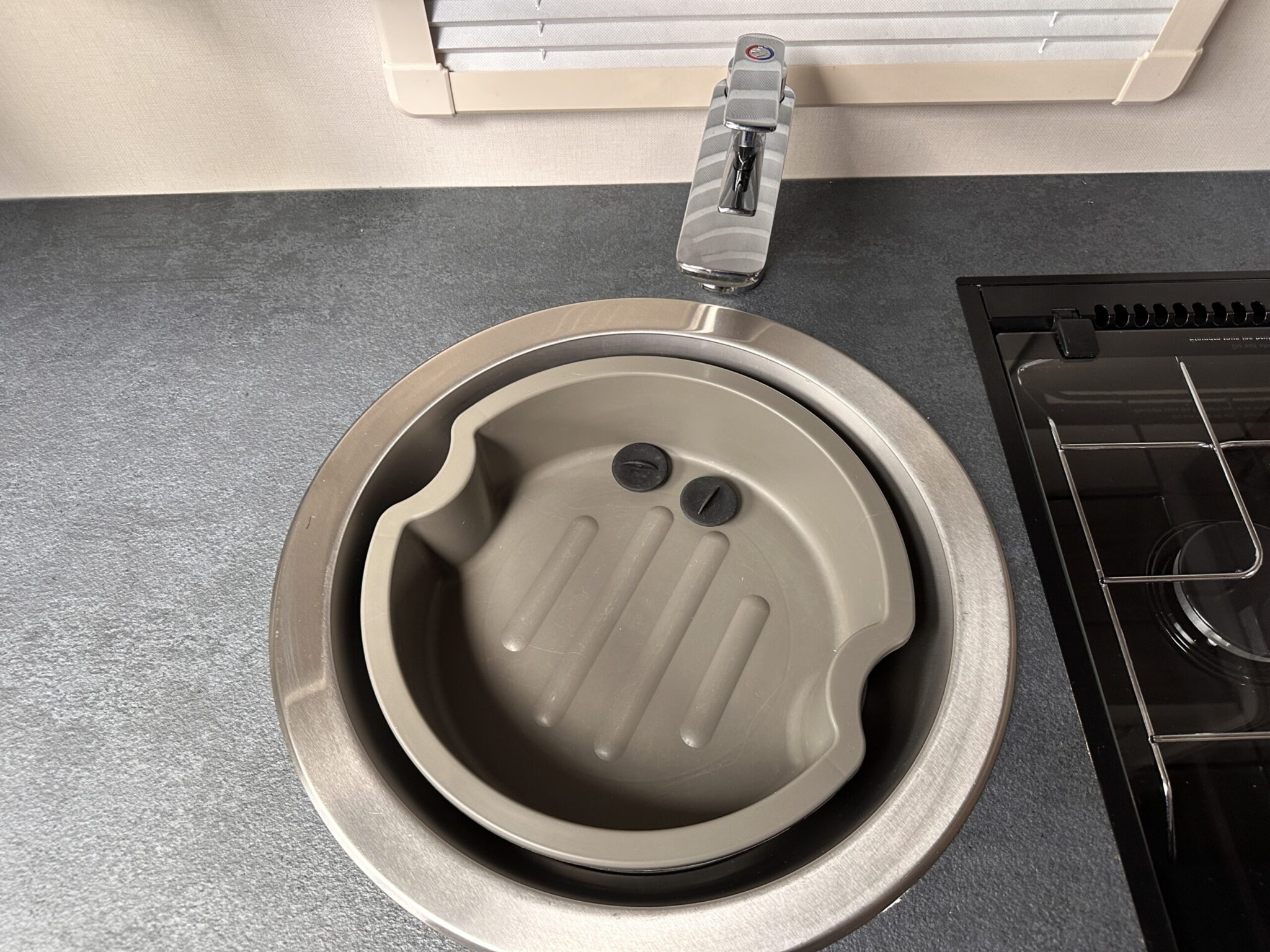 - Kitchen: The central kitchen is well-equipped with a Thetford oven and separate grill, a dual-fuel hob, a built-in microwave, and a Dometic series 10 fridge, providing all you need for your holiday cooking.