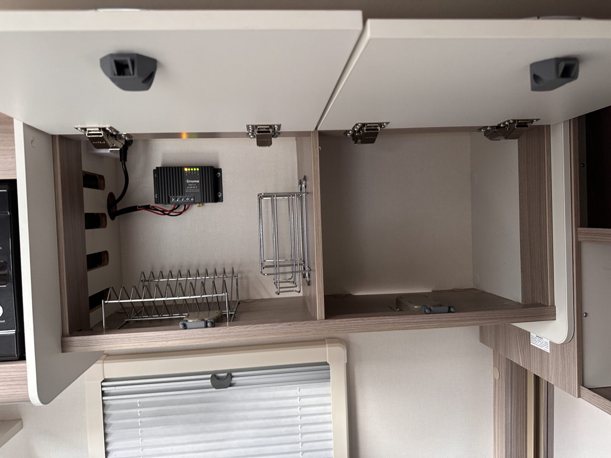 4. What are the benefits of the solar panel? The 100W solar panel on the roof keeps a constant trickle-charge going into your leisure battery. This is great for giving you more freedom to camp on sites without electric hook-up, as it will keep your 12v systems like the lights, water pump, and USB sockets running.