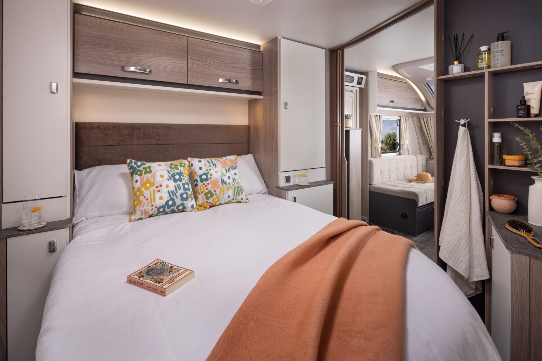 Inside, the focus is on comfort and usability. The transverse island bed is easy to access from both sides, while the end washroom provides a proper shower, washbasin, and storage. New Cherub furnishings, Duvalay mattresses, and a generous 5.83m internal length make the 2026 model feel bright and spacious.