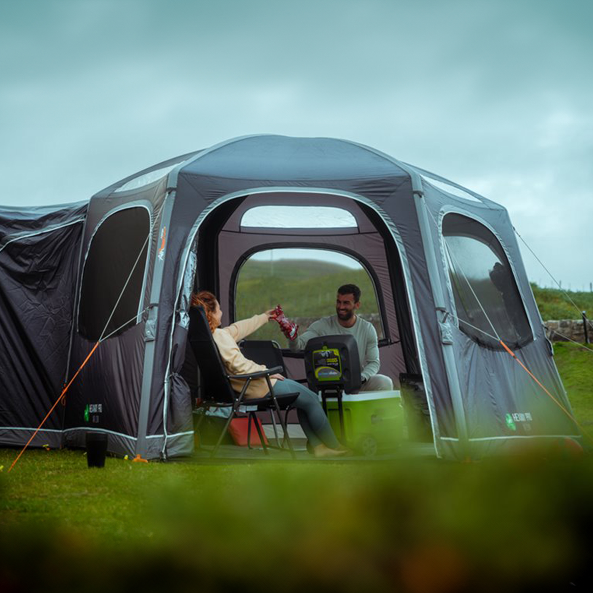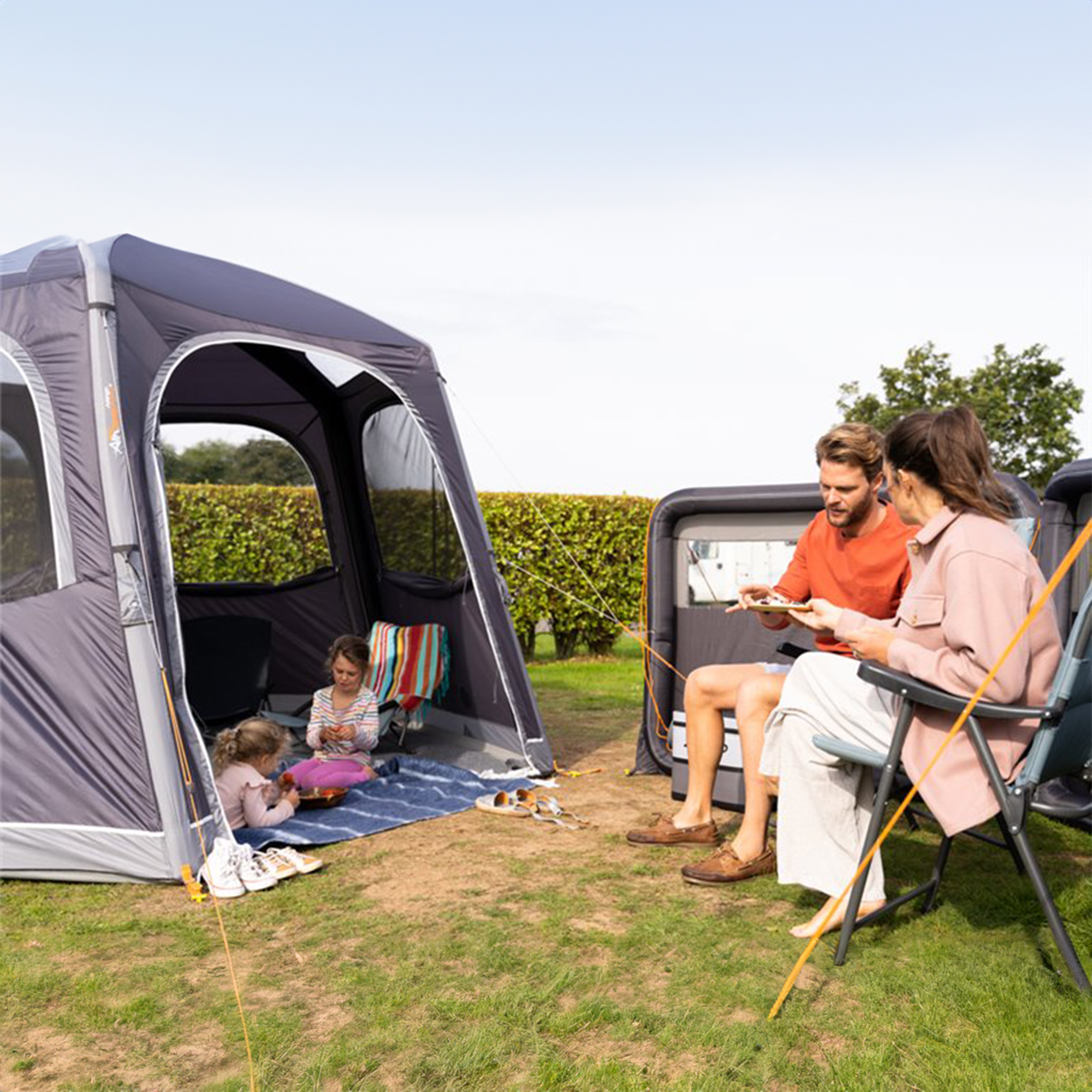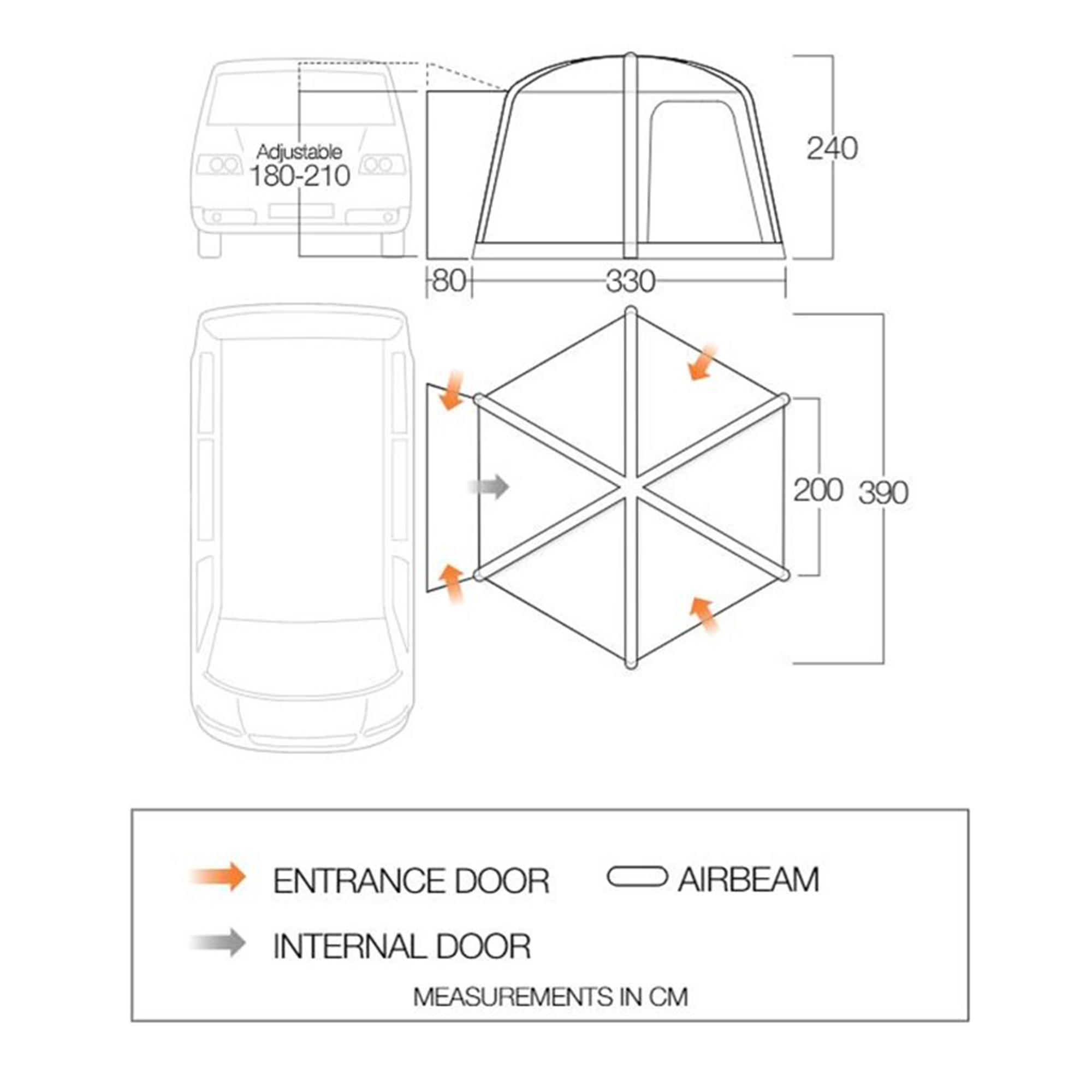 - Structure: The awning uses Vango’s AirBeam® technology, allowing for a single inflation point, making setup quick and easy. The pre-angled beams provide greater internal headroom and stability.