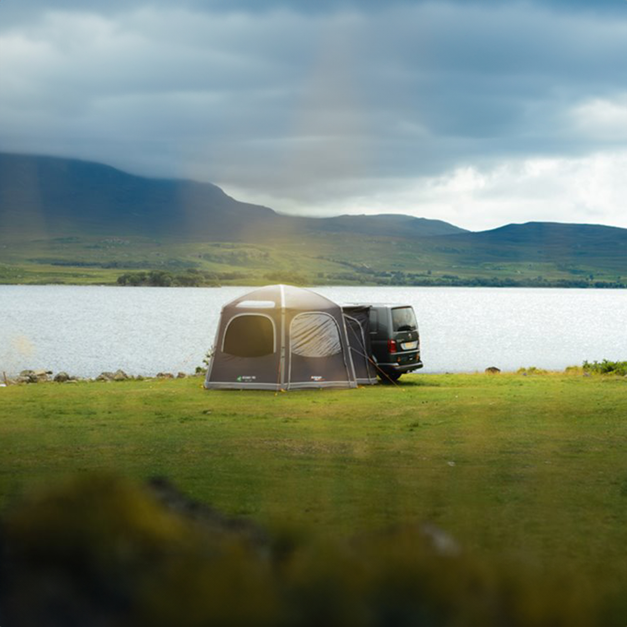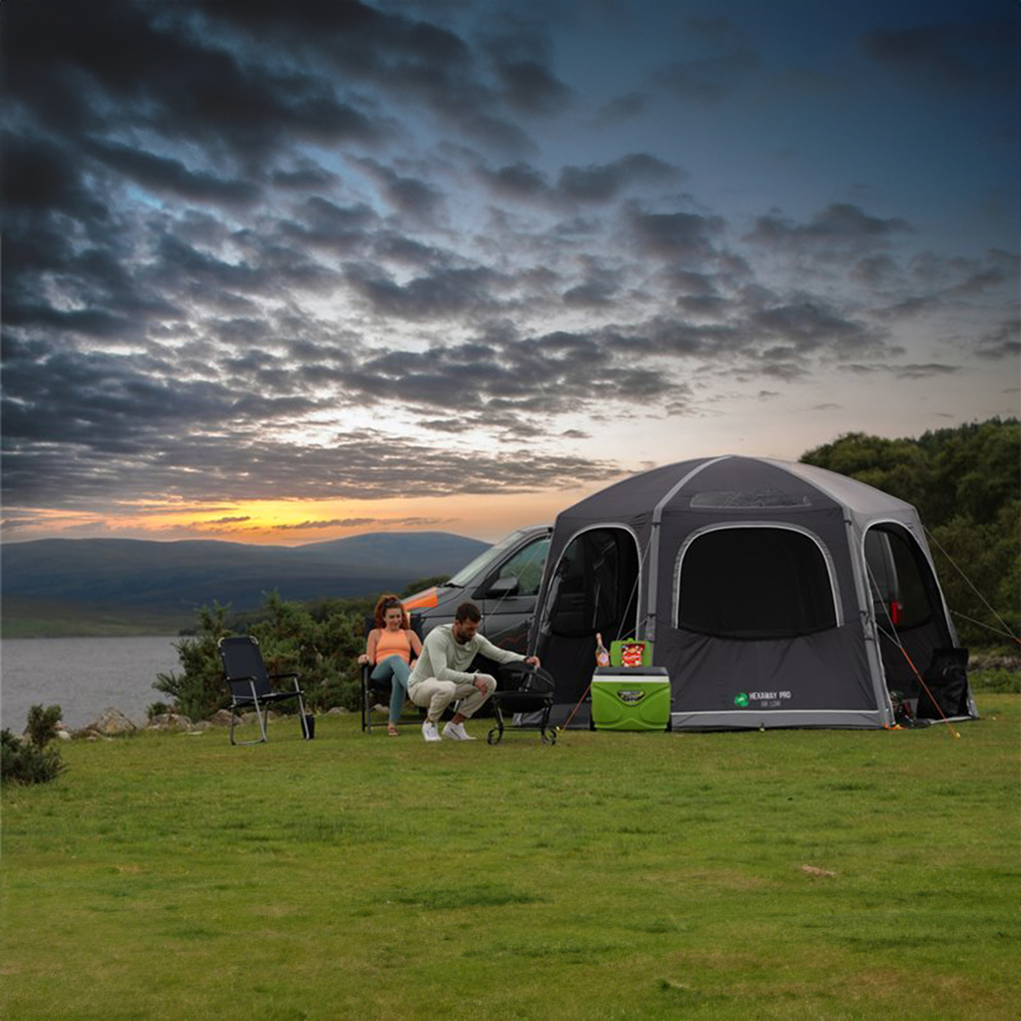The popular Vango AirHub Hexaway awning is a perfect place to socialise. It creates a spacious living room-style extension to your vehicle. The hexagonal design ensures you can maximise all the space when spending time with family and friends. The Sentinel ECO Pro fabric, made using recycled materials, is perfect for touring with your vehicle, and the single inflation system is quick and easy to erect and deflate. If you're off exploring for the day, you can easily roll away the connecting tunnel, which features two side entrance doors for easy access.