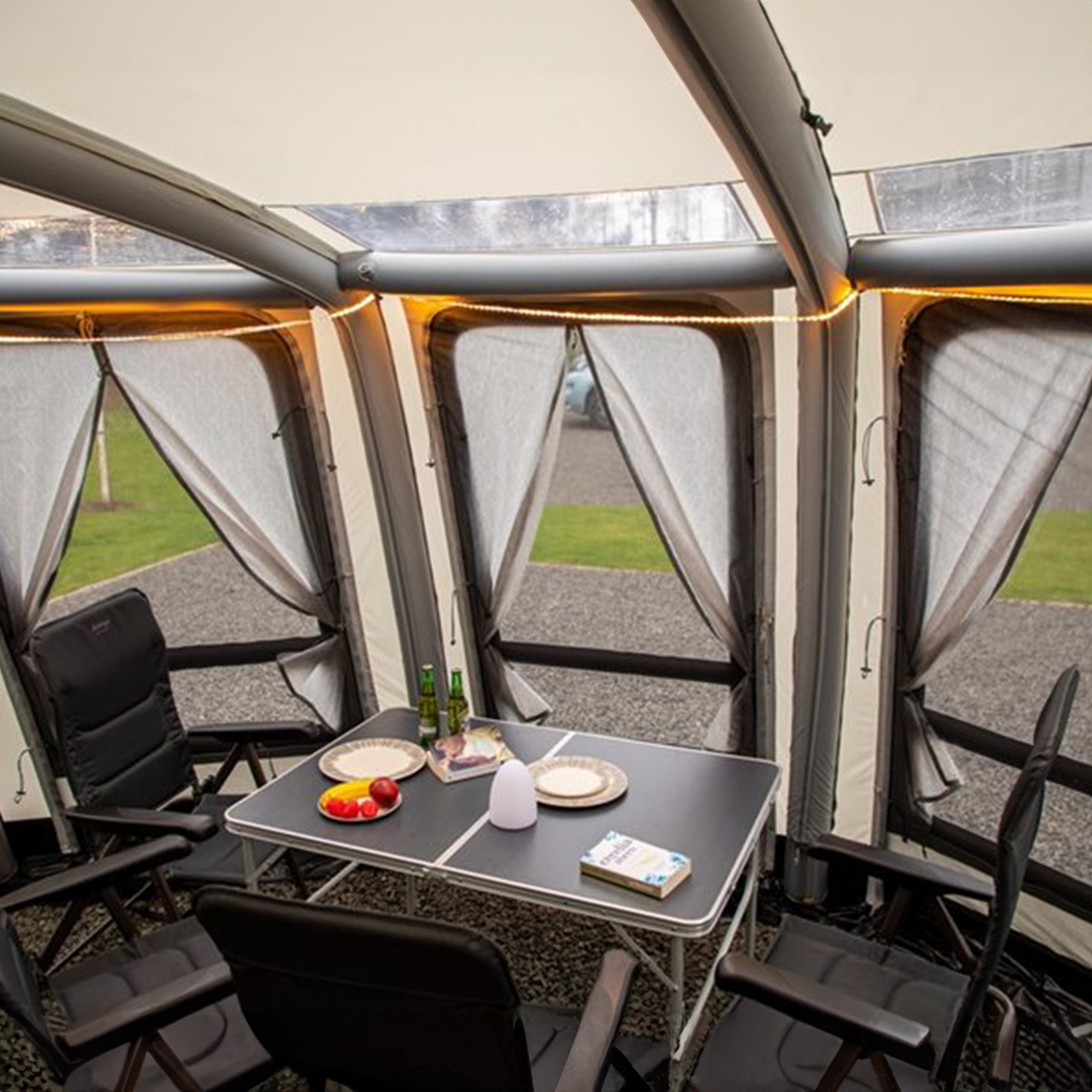 - Flexible LED Lighting Strips – Attached using the Vango Sky Track® System or hook and loop attachment provided